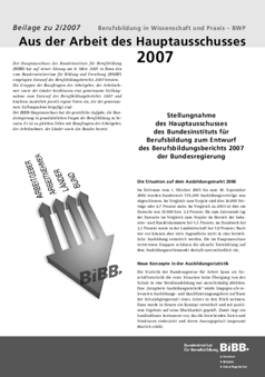 Stellungnahme des Hauptausschusses des Bundesinstituts für Berufsbildung zum Entwurf des Berufsbildungsberichts 2007 der Bundesregierung vom 8. März 2007.
