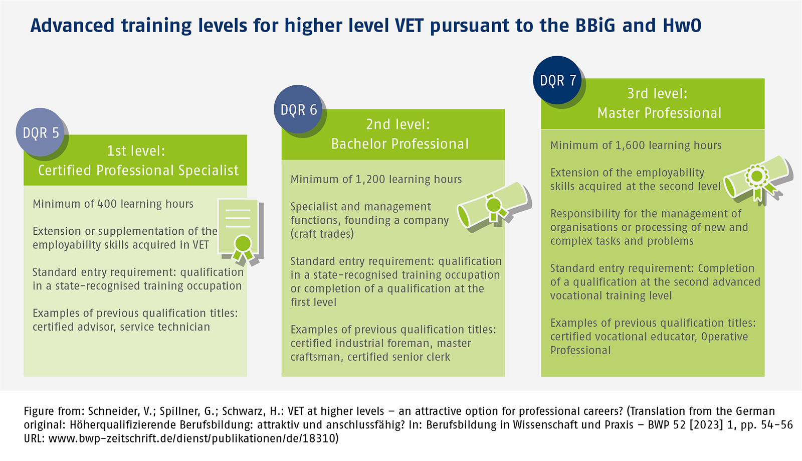 Advanced training levels for higher level VET pursuant to the BBiG and HwO