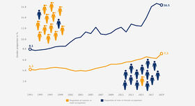 A sharp decline in female participation in the dual vocational system pursuant to the Vocational Training Act (BBiG) or the Crafts and Trades Regulation Code (HwO) has been evident since the start of the 1990s. By 2019, the number of women as a proportion of all trainees had fallen by five percentage points. In the area of responsibility of trade and industry, it was even the case that a decline of just under eight percentage points was recorded. What impact is this having on developments in occupational structure? This article uses the Vocational Education and Training Statistics to illustrate how the ratio of occupations dominated by men or by women has shifted over the past three decades. It also investigates which differences in training success may emerge as a result of such an unequal distribution of the genders.