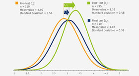 Effects on eight target dimensions were measured at three different points in time, directly before and after the intervention and an average of four weeks later. These impacts were recorded using questionnaires from three perspectives – assessments of the specialists, assessments of the pupils and changes from scale measurement values between the first, second and third wave of the survey.