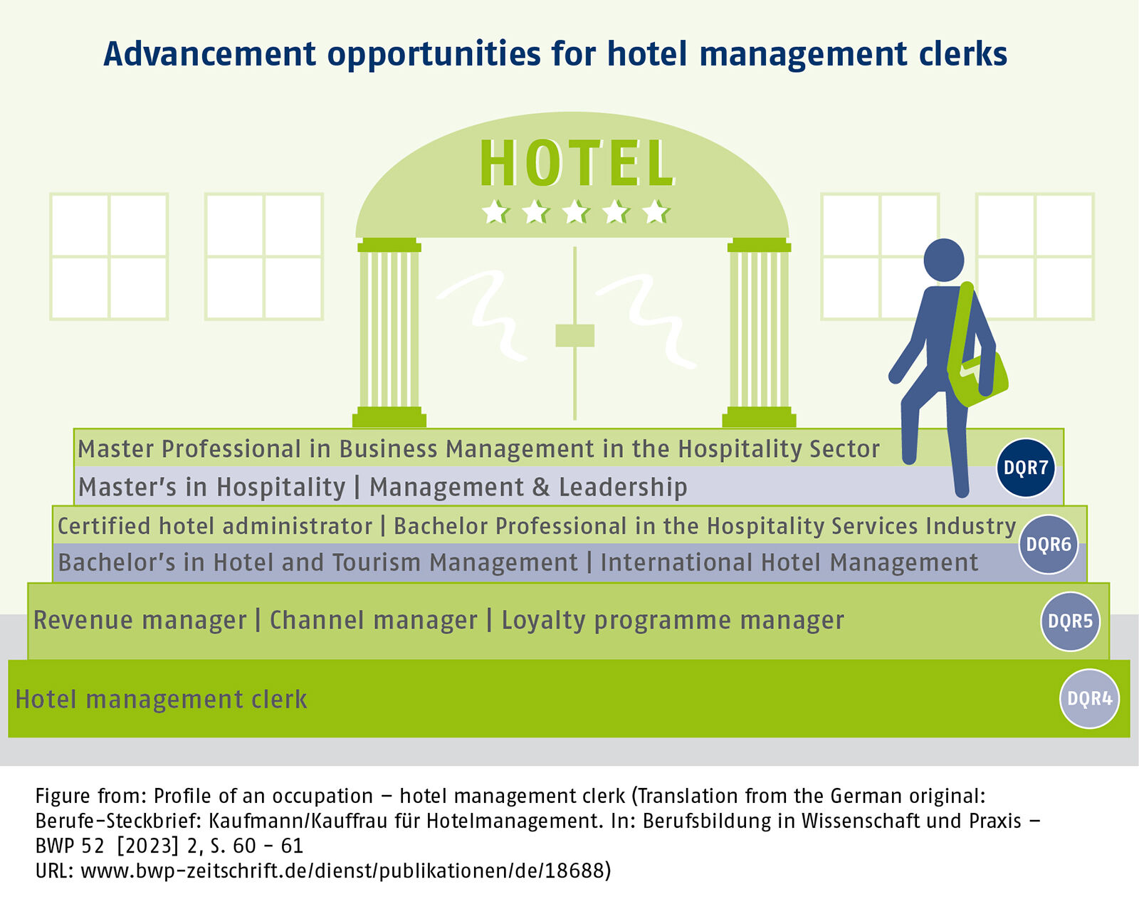 There is also a multitude of continuing and advanced training routes including Certified hotel administrator or Master Professional in Business Management in the Hospitality Sector. In the German Qualifications Framework (DQR), these statutory upgrading training regulations are aligned to the same reference levels as bachelor’s and master’s degrees in the field of hotel management.