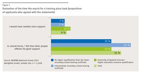 Although only a total of eight percent were of the view that they needed even more guidance, only 36 of successful applicants felt that they had received a good level of support. How can this be explained? Whereas respondents probably took "guidance" mainly to mean the imparting of information, the term "support" is more widely defined. It also includes emotional backing and assistance when problems occur (e.g. dealing with the flood of information or failed applications). Obviously the young people feel that these are the aspects that fall short.