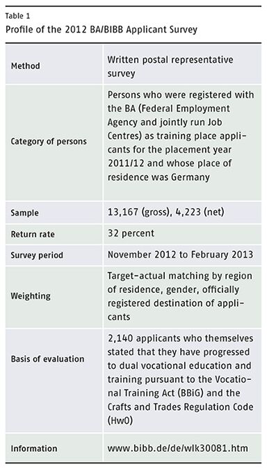 Table 1: Profile of the 2012 BA/BIBB Applicant Survey