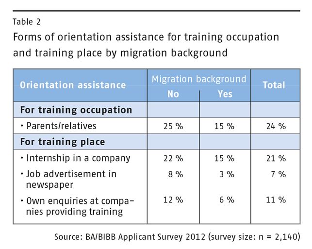 Table 2: Forms of orientation assistance for training occupation and training place by migration background