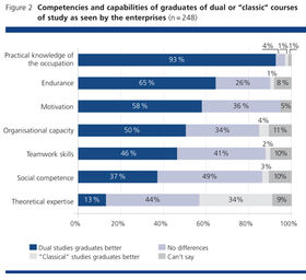 As Figure 1 illustrates, companies expect dual students to have a skills advantage. The vast majority of companies (91%) noticed such differences.