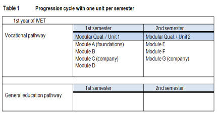 The structure of the curricula in the form of units and modules, as outlined above, results in units of initial vocational education which have a certain complexity. This helps to avert the risk of any fragmentation within the initial vocational education course, which might jeopardise the uniformity of the occupational profile. In the reform debate, this form of 'moderate modularisation' was linked with the following potential benefits: