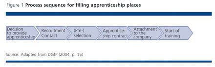 Between the decision to offer a training place and the young person's arrival at the firm, a considerable period of time will normally elapse. This can be divided into different phases, each of which is characterised by a specific set of tasks associated with filling the training place (cf. Figure 1).