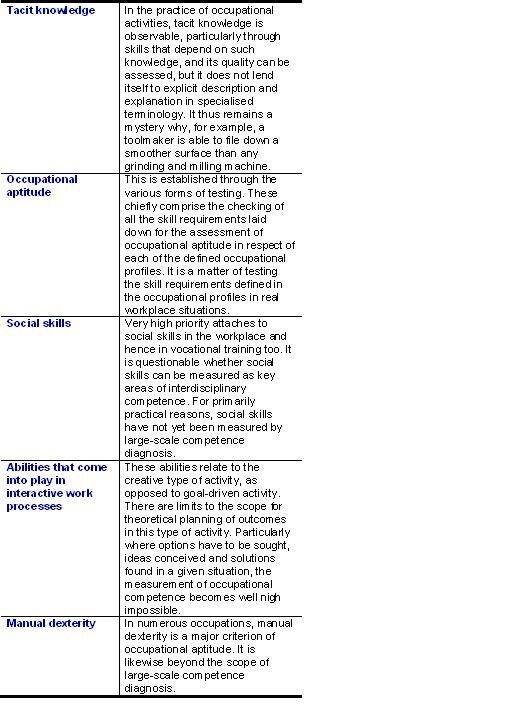 On the basis of this definition, there is a distinction in vocational education and training between the cataloguing of areas of competence on the one hand and the checking of skills on the other.