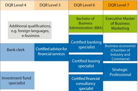 One example of such a state regulated advanced training occupation in the financial services sector is certified advisor for financial services. The starting point for the promulgation of the advanced training regulations for this qualification in 2012 was the increased requirement for competent advice in the insurance sector, an object of broad debate in the wake of the financial crisis. Certified advisors for financial services specialise in financial products aimed at the retail banking sector including financial consulting, real estate, credit finance and insurance. Qualifications at the second level of advanced training provide commercial training for roles such as certified specialist or certified senior clerk. These qualifications fulfil the requirements for functions involving specific specialist and management tasks and are aligned to level 6 of the DQR, the same reference level as a Bachelor degree. The most important banking-specific advanced training regulations pursuant to the BBiG are those leading to the qualification of certified banking specialist.