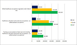 The Federal Statistical Office has actually published data for specialist healthcare occupations regulated under federal government law in subject matter series 11, series 2, however it must be noted that, to date, no complete database exists at federal level for these training courses because some states have either not passed on the data or not passed on a complete data set (cf. Federal - State working group 2012, p. 44). Furthermore, only limited in-depth analyses are available. For example, there is no information regarding prior learning in school or the number of contract terminations.