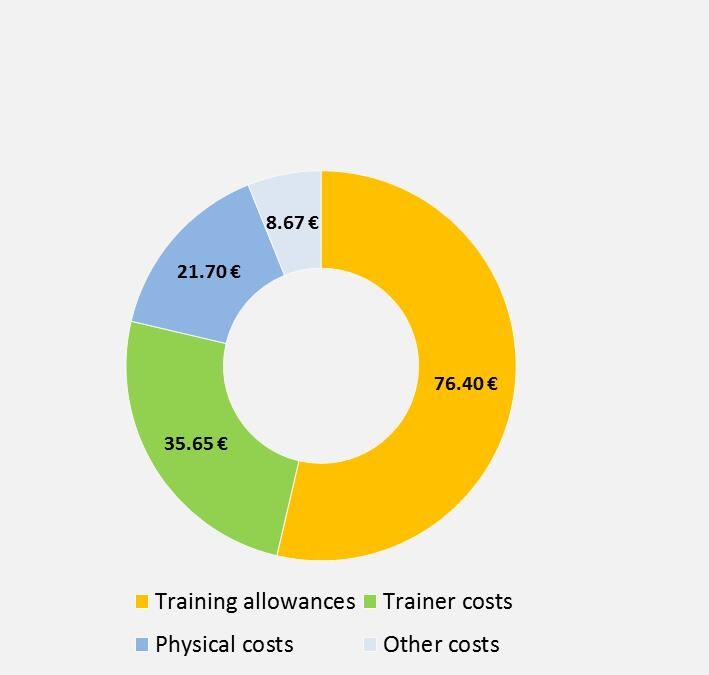 Figure 1 presents the average cost within the different components that firms incur per month and intern. For better comprehensibility, the values were transformed into euro3. We present the average values per month since the training duration varies substantially, ranging from one to six months.