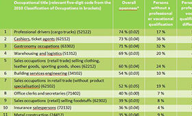 - Via the proportion of persons employed in an occupation who have not completed professional or vocational training.