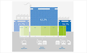In the special supplementary for the 2016 survey wave, information on the following eight categories of digital technologies was collected. These vary strongly in terms of penetration. Virtually all companies have computers/smartphones (99.6%) and digital network technologies (95.8%). Many companies also use data security technologies (89.2%) or technologies to network with customers (68.2%). Computer-aided work equipment (36.5%), technologies for the processing and storage of data (34.5%), technologies for networking with suppliers (32.0%) and human resources or work organisation technologies are all less common.