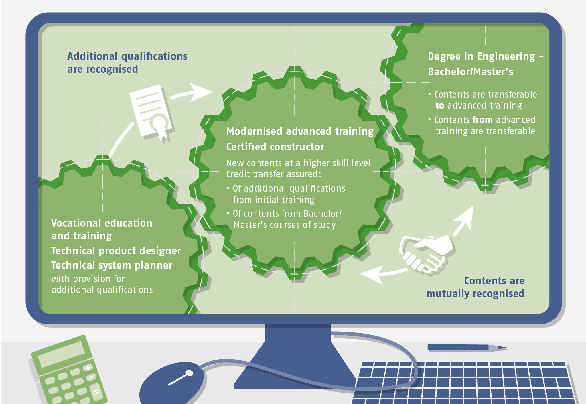 Following an evaluation of all arguments and results, the project’s advisory council arrived at a unanimous decision to recommend the modernisation of the training occupation. The objective is to develop specific advanced vocational training for the training occupations of technical product designer and technical system planner which will replace the existing provision from 1994.