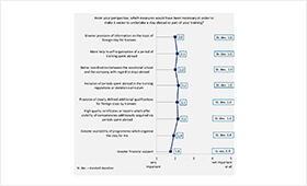 Companies view greater provision of information (AV = 2.1) and financial support (AV = 2.3) as suitable support measures that would facilitate periods spent abroad. In addition, the companies believe that provision of clearly defined additional qualifications (AV = 2.2) and appropriate certification or documentation of these additional qualifications (AV = 2.3) would be helpful.